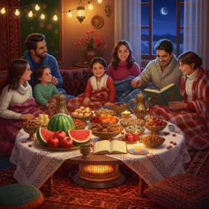 Traditional Delights: Enjoy the Persian dish, customary Ajil (nuts), fresh pomegranate, and watermelon, symbols of health and vitality for the year ahead.
